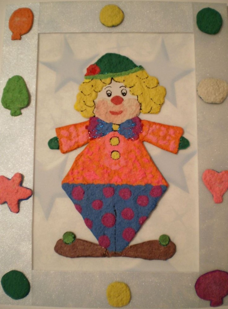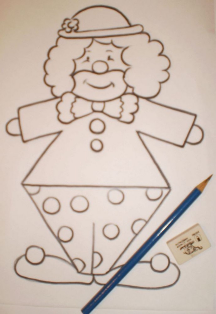 Затем на заготовке простым карандашом наносим рисунок клоуна.