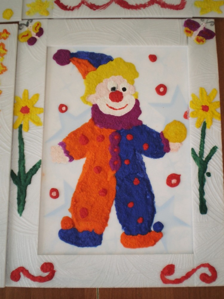 - солёное тесто (1:1 муки и соли + клей ПВА + вода) довести до густоты сметаны.