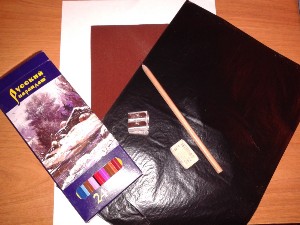 - Набор акварельных цветных карандашей (можно использовать восковые мелки и пастель)