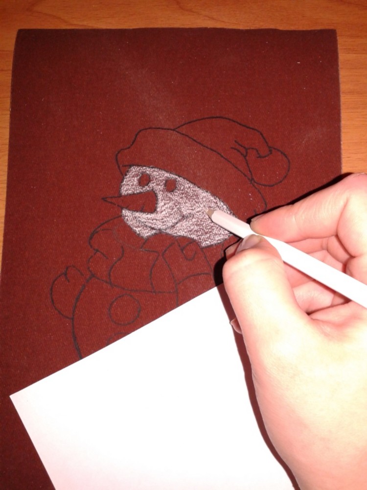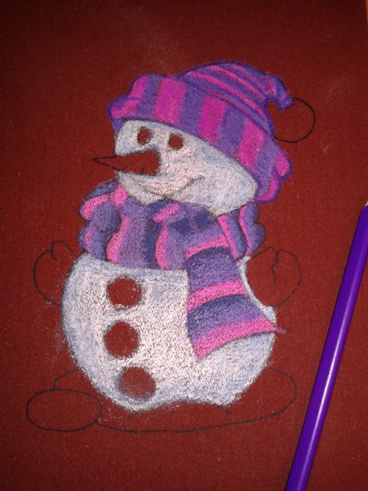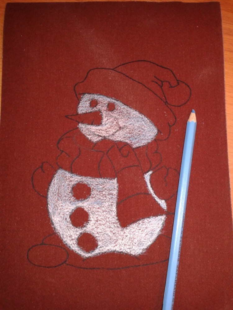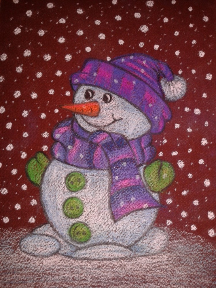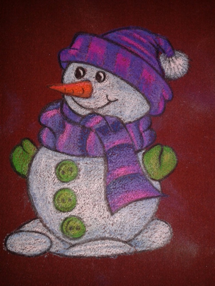 На листе белой бумаги (170*240) простым карандашом нарисовать снеговика. Можно использовать готовую картинку