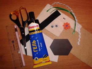 - ножницы, чёрная гелиевая ручка, линейка, клей «Момент».