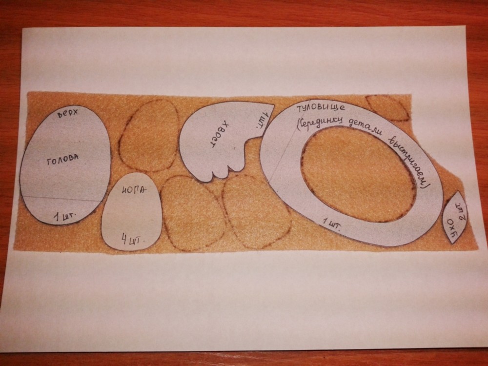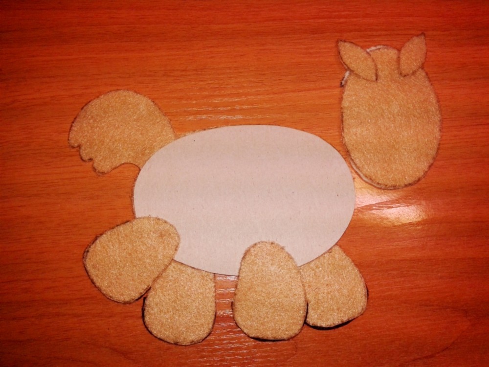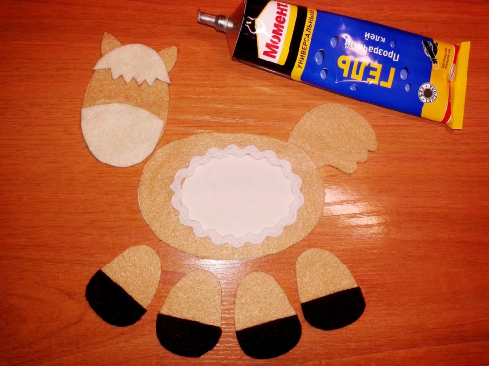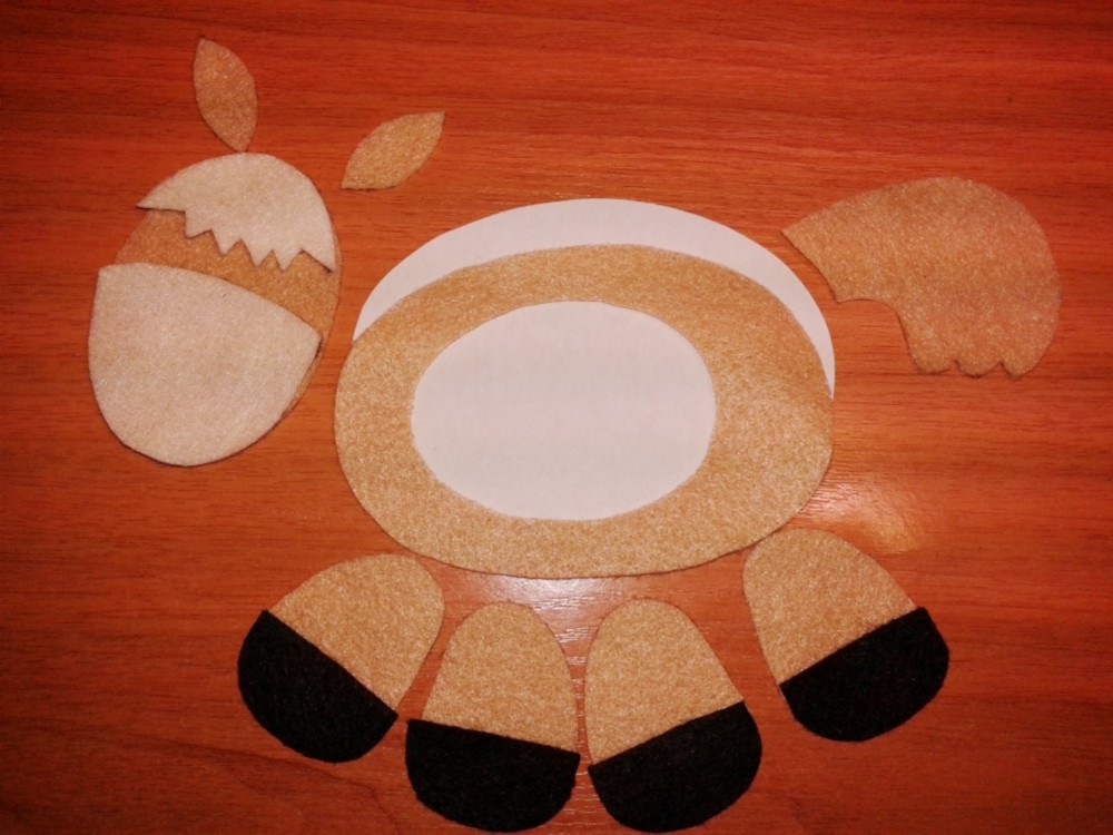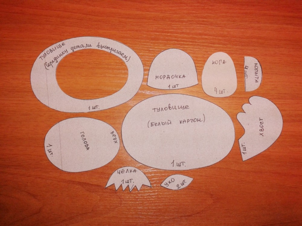 Для начала подготовим шаблоны всех деталей: туловище, голова, нога, копыта, хвост, мордочка, чёлочка и ухо. Шаблон в формате А4 можно скачать