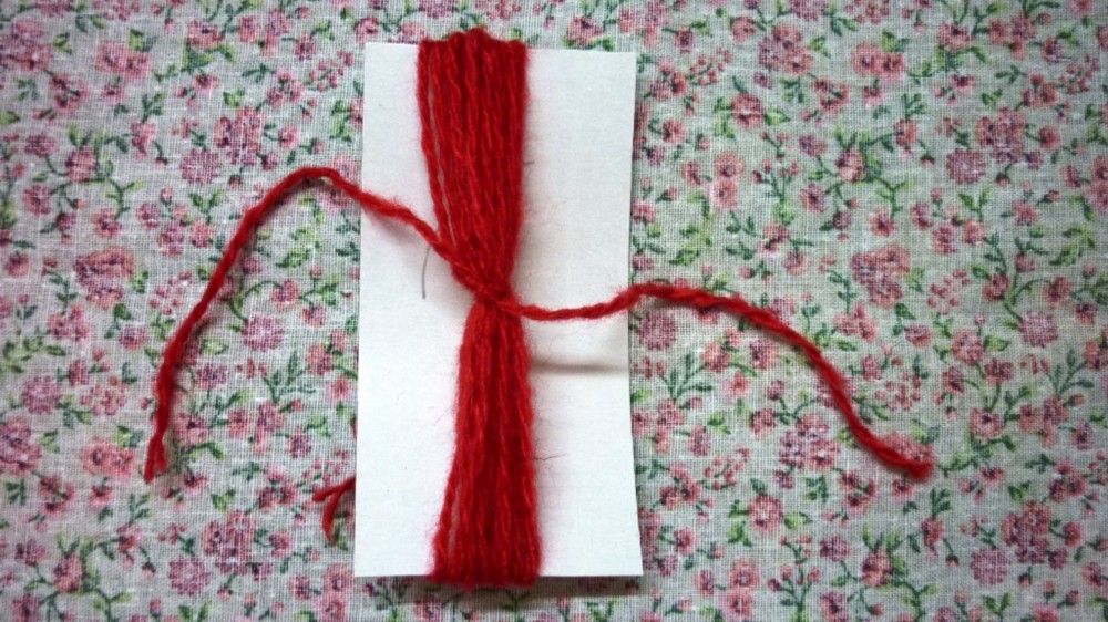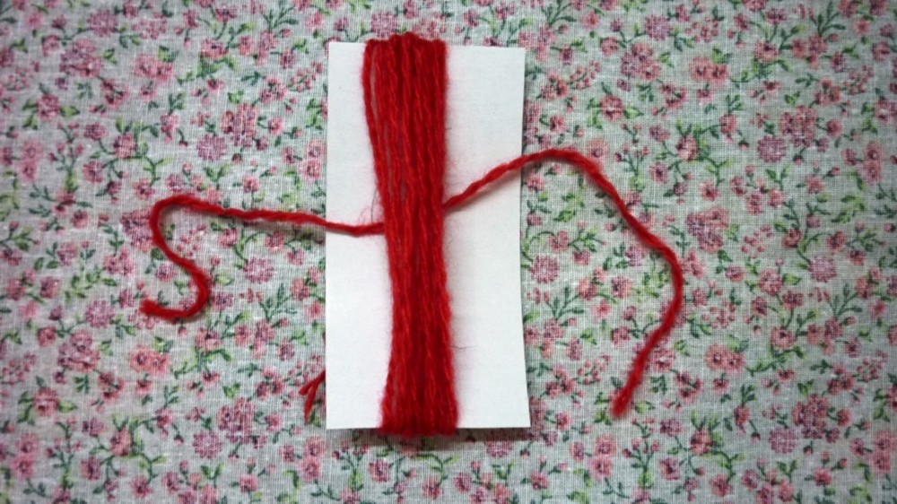 Намотать нитки 1,5 м на картон шириной 5 см. |