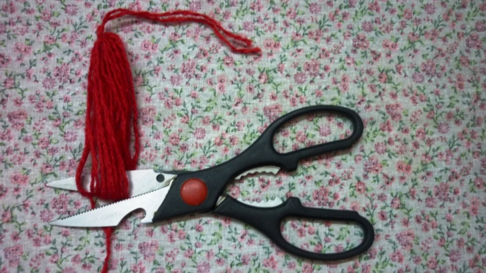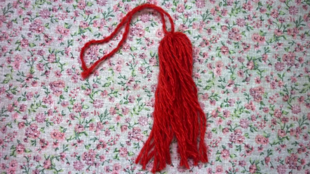 С одной стороны перевязать посередине кусочком нити, длинной ок. 12 см . |
