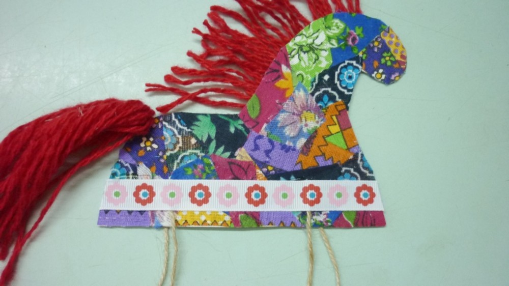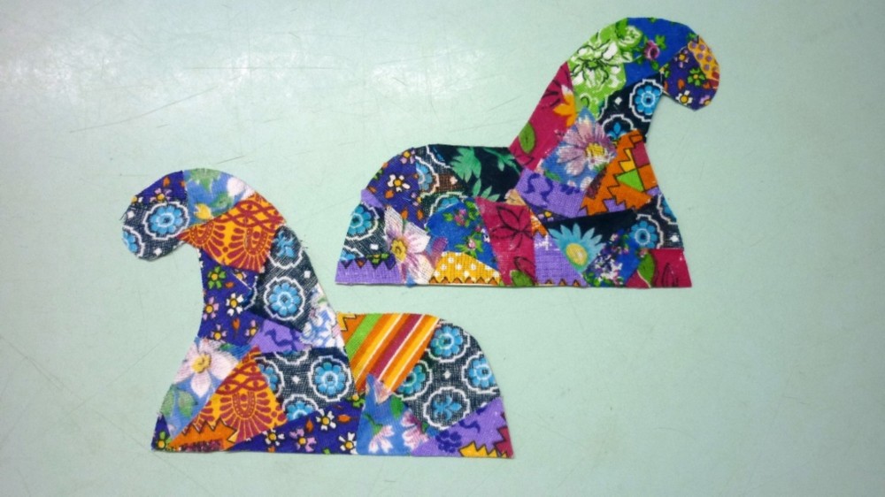Аналогично обклеить тканью вторую заготовку лошадки так, чтобы детали были в зеркальном отражении. |