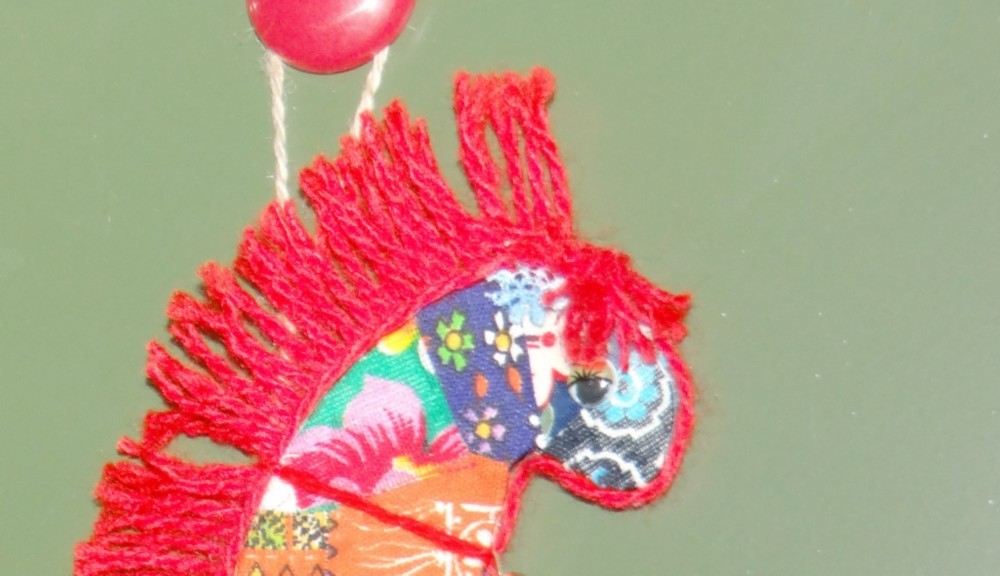Сверху на голову наклеить челку, расположив ее одновременно с обеих сторон лошадки. |