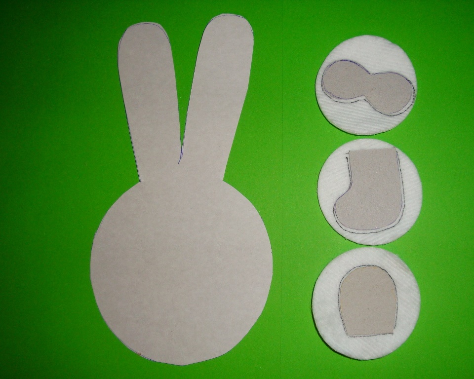 С помощью шаблона вырезать из бортовки большое, среднее и маленькое сердечки. Точно такие же сердечки вырезать из разноцветного ситца.